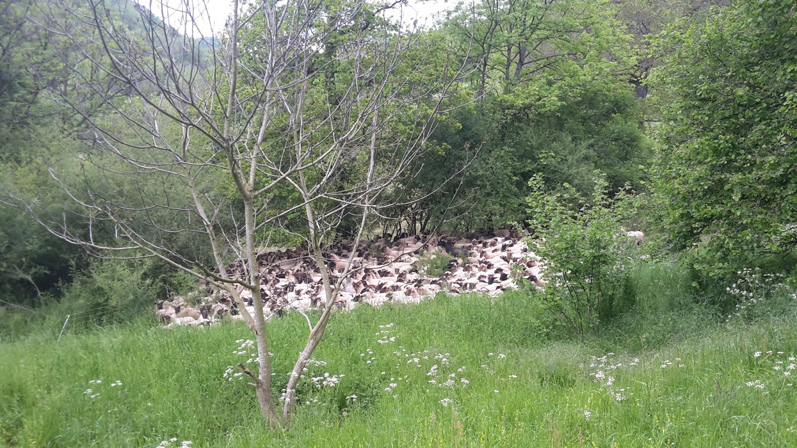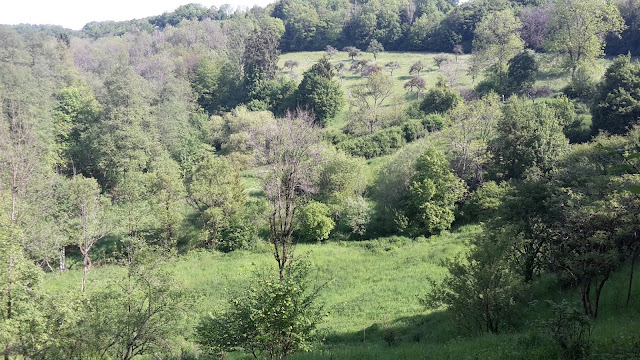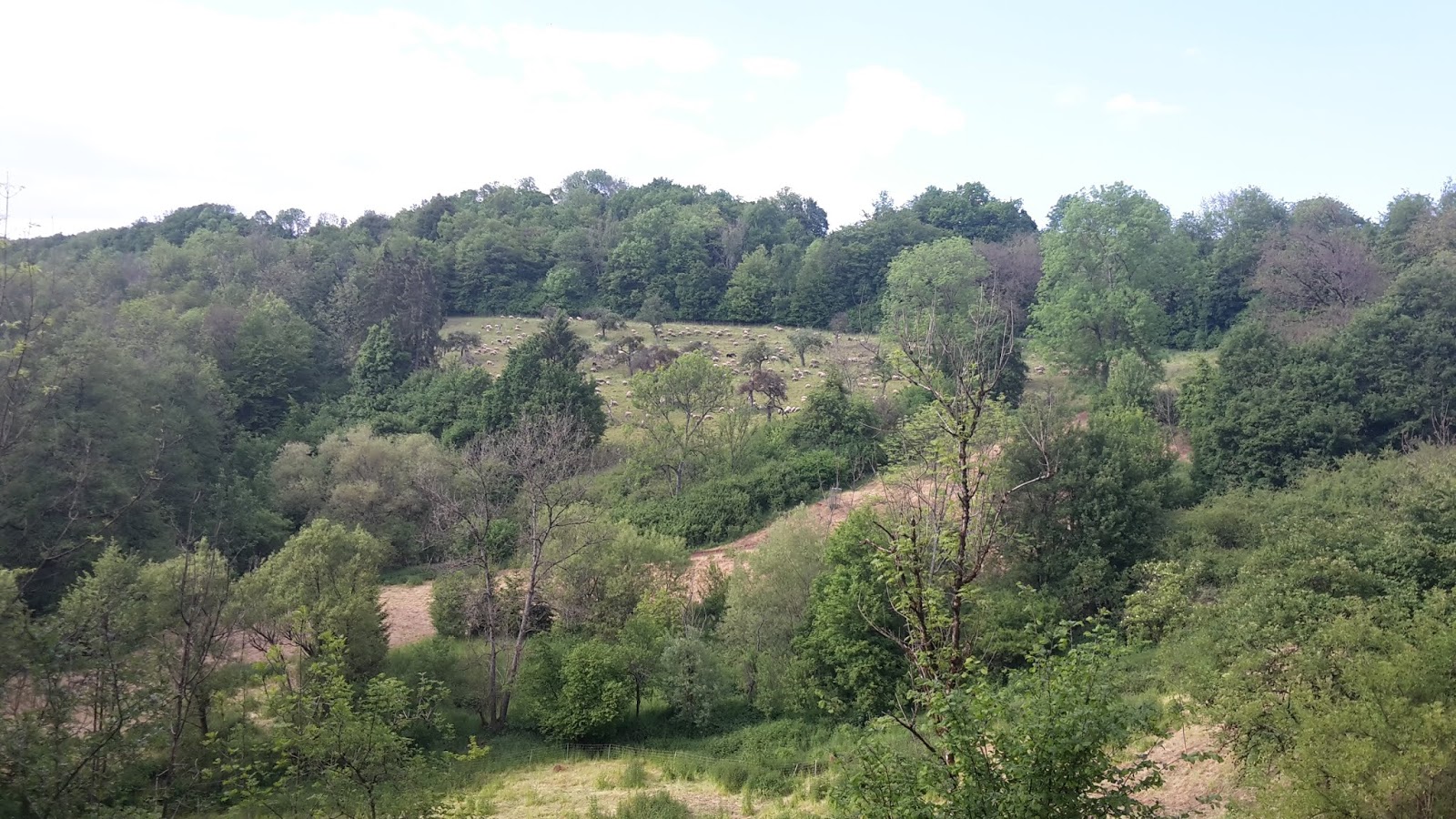 Es sind verbuschte Steilhänge, die zum größten Teil bewaldet sind. In den lichten Frühlingswäldern blühen wunderschön die Orchideen. Und auch, wenn die dort blühen, da die Flächen beweidet werden, gäbe es riesen Alarm, sollte da jetzt ein Schaf dran knabbern oder drüber laufen.