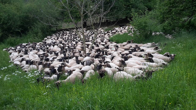 Die Schafe sind über Winter viel genetzt worden und ähnlich wild wie ihre Lämmer. Dazu haben sie mich und meine Hunde in den letzten Monaten vergessen.