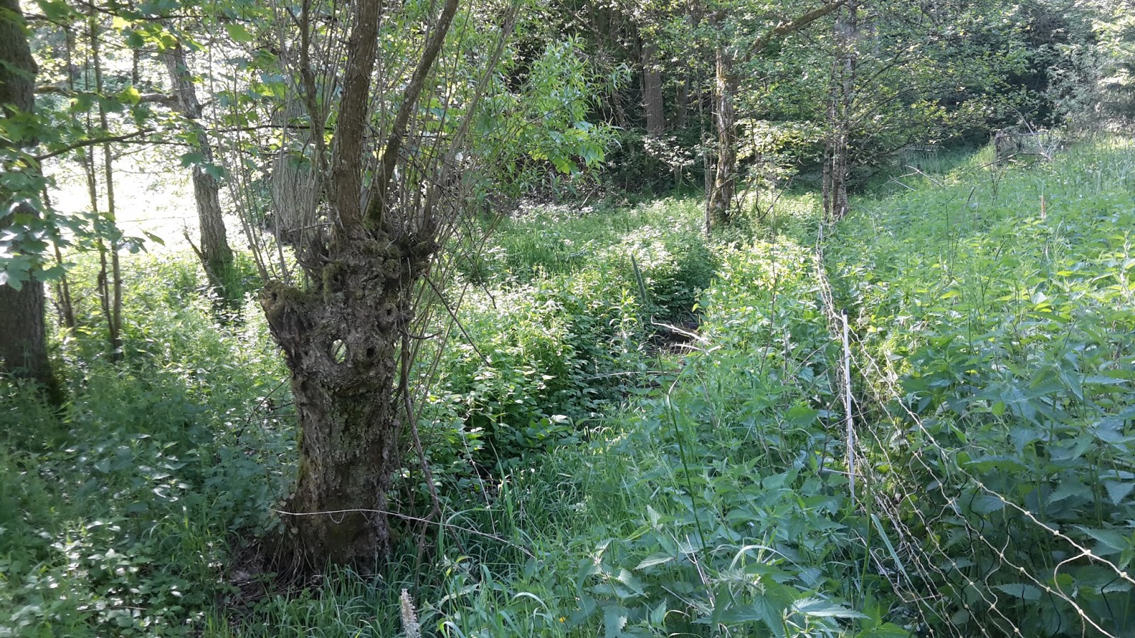 Da ein Bächlein das über Felsen springen und über das natürlich auch der Zaun rüber muss.